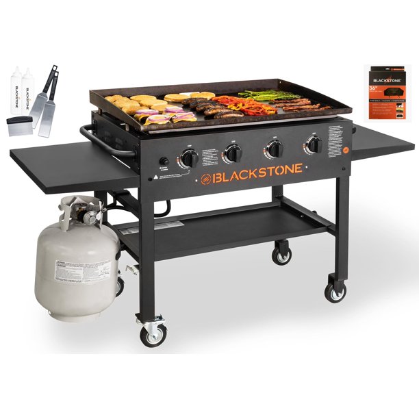 Blackstone 1554 Cooking 4 Burner Flat Top Gas Grill Propane Fuelled Restaurant Grade Professional Outdoor Griddle Station With Side Shelf 36 Inches Black Walmart Com Walmart Com