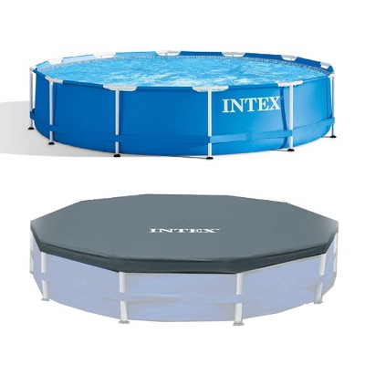 This cover fits Intexs 13-foot round pool though its available in other sizes including 10-foot and 12-foot. Intex 12-ft x 12-ft Intex Vinyl Leaf and Debris Pool Cover. Pool Covers can be shipped to you at home while others can be picked up in store.